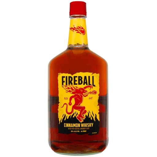Free Your Fire with the heavenly taste and ferocious burn of Fireball Cinnamon Whisky. Fireball is the perfectly blended Canadian whisky made with real cinnamon for a fiery kick of red hot cinnamon flavor. Fireball is America’s #1 shot brand and #1 whiskey brand, making this cinnamon whisky the iconic choice for celebrating with friends at home or your favorite bar. At 33% alcohol by volume, a Fireball shot is the perfect whiskey shot for pregaming before a chill night out. Fireball Canadian Whisky also tastes great when enjoyed straight or added to your favorite mixed drinks or a classic cocktail. The cinnamon flare of Fireball hard liquor also enhances your favorite hard seltzer, hard cider and other alcoholic drinks. With countless ways to enjoy Fireball Cinnamon Whisky, bending the rules is easy - and delicious. Store Fireball at room temperature or store and pour straight from your freezer to enjoy an icy, spicy shot. Fireball is one of a kind, not to be replaced by any other copycat cinnamon whiskey. Fireball tastes like heaven and burns like hell.