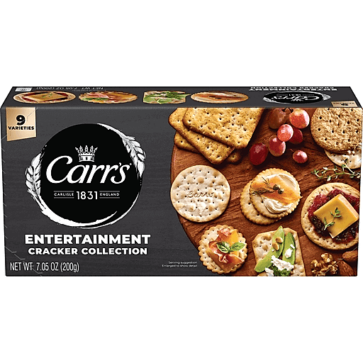 A delicious and perfectly crisp assortment of Carr's Entertainment Collection Crackers, this special Variety Pack offers 9 exciting varieties for guests to enjoy including English Wafer, Choice Grain, Small Digestive, Small Wheat, Oblong Wafer, Table Water, Carlton Selects, Oyster, and Cream crackers. With delicate textures and subtle flavors, these crackers make wonderful canvases for your favorite toppings and dips including cheeses, fruit preserves, deli meats, and more. Carr's Crackers are the perfect addition to party platters for any occasion, from elegant holiday celebrations to casual get-togethers. Stock your pantry with Carr's Crackers so you are always prepared for impromptu soirées with family and friends. The crackers are conveniently contained so you can take them along on picnics, to an outdoor concert, or any other everyday out-of-home occasion. With an authentic taste that can be enjoyed simple or dressed up, at casual gatherings or sophisticated festivities, Carr's Crackers help make everyday moments better.
