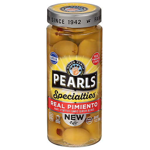 Pearls Hand Stuffed Real Pimiento Jumbo Queen Olives 7 Oz